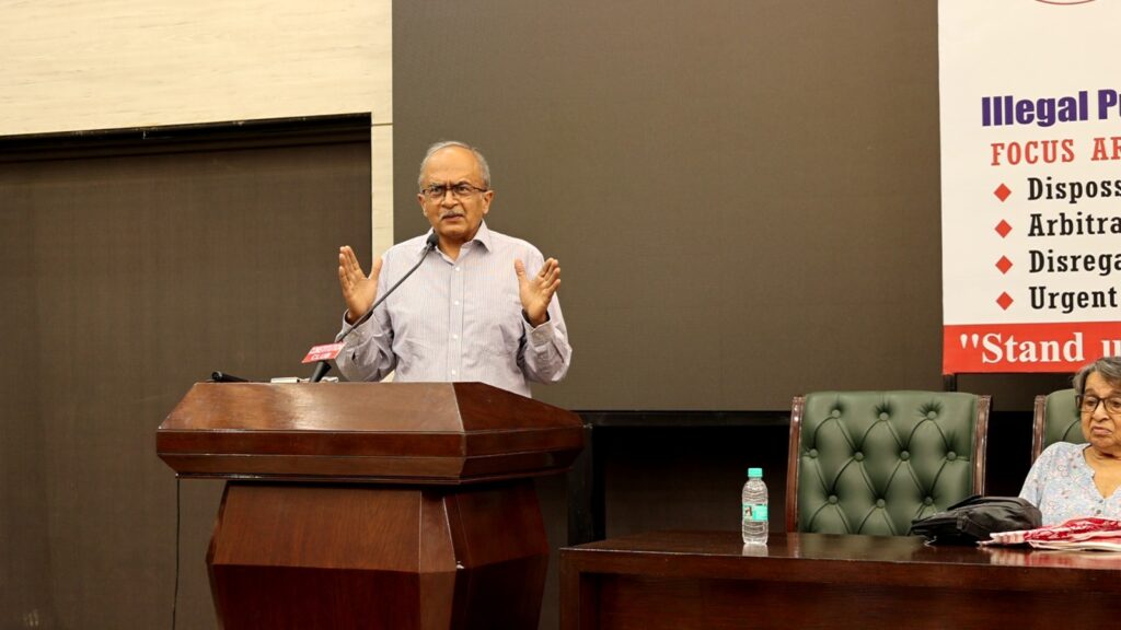 He claimed the Indian government is violating this by forcing Muslims to move to border areas and threatening them to flee or face being shot. Discussing the role of tribunals, Bhushan raised serious concerns about the Foreigners Tribunals, describing them as arbitrary and biased. He alleged that tribunal members face pressure to label more people as foreigners to secure extensions and pointed out that even those not classified as foreigners by these tribunals are being deported, mainly from the Muslim community. In his closing remarks, Bhushan called for a widespread protest against these unfair practices. He said, “Those who are directly affected must come forward, but those who are not currently impacted should also join the protest because soon they too could be affected. Courts respond only when there is a visible and public outcry.”