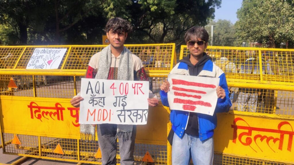 A large cohort of protesters, including students and activists, gathered at Jantar Mantar on Wednesday to urge the state and central government to tackle the worrisome air quality in the national capital. Delhi has been suffocating in a man-made gas chamber created by years of neglect, unregulated industrial and vehicular emissions, and a profit-first development model that has pushed public health to the margins.
