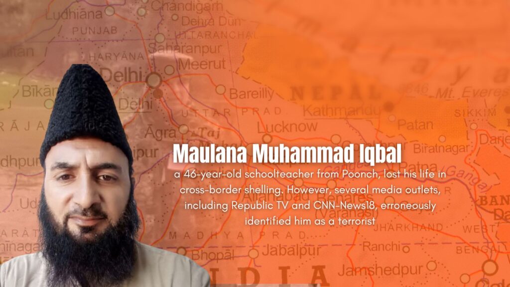 In the wake of the 2025 Pahalgam attack in Jammu and Kashmir, a tragic incident of misreporting has sparked outrage and calls for accountability. Maulana Mohammad Iqbal, a 46-year-old schoolteacher from Poonch, lost his life in cross-border shelling. However, several media outlets, including Republic TV and CNN-News18, erroneously identified him as a terrorist—citing his affiliation with a madrasa and his religious appearance as grounds for suspicion.