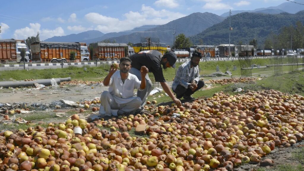 Thousands of tons of apples are reeking and rotting in marooned trucks along the Srinagar-Jammu National Highway, as the key arterial route that connects Kashmir’s orchards to markets across India, remains blocked for the 20th consecutive day due to inclement weather and landslides, leaving the farmers clueless on how to clamber out from the losses faced.
