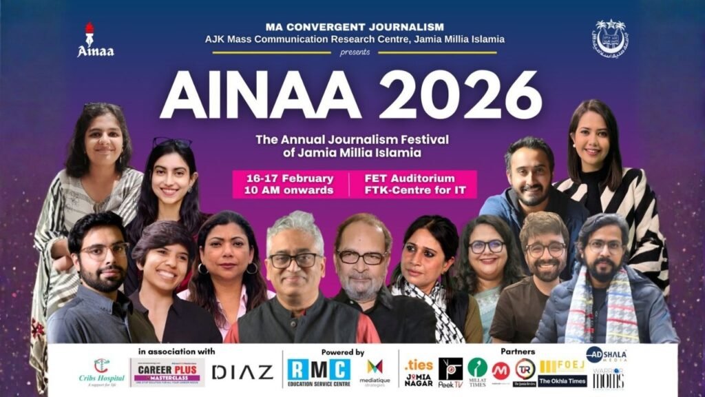 The AJK Mass Communication Research Centre at Jamia Millia Islamia is set to host the 13th edition of AINAA, its annual journalism festival, on February 16 and 17. Organised by students of the M.A. Convergent Journalism programme, the two-day event will bring together prominent journalists, filmmakers, authors, social media influencers and media practitioners for a series of discussions and interactions.