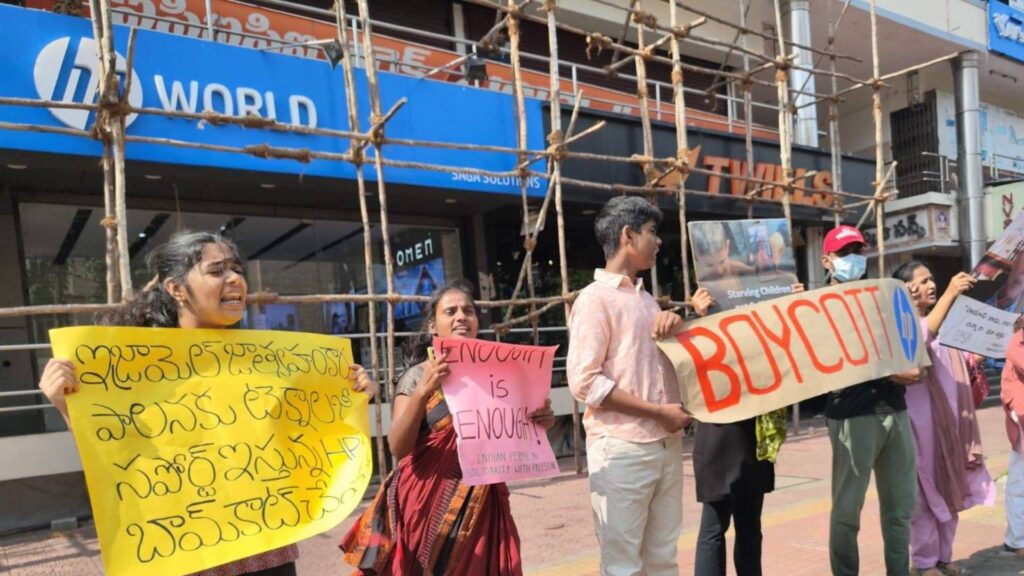 Demonstrations took place in Delhi, Mumbai, Hyderabad, Pune, Rohtak, Chandigarh, Visakhapatnam, Vijayawada, Patna and several other regions. Alongside IPSP, groups such as Disha Students’ Organization, Naujawan Bharat Sabha, Revolutionary Workers’ Party of India, Stree Mukti League, and the Delhi State Anganwadi Workers and Helpers Union joined the call. These groups have been part of earlier campaigns against companies accused of supporting Israel, including Tata Motors, McDonald’s, Starbucks, Reliance Retail and Mahindra.