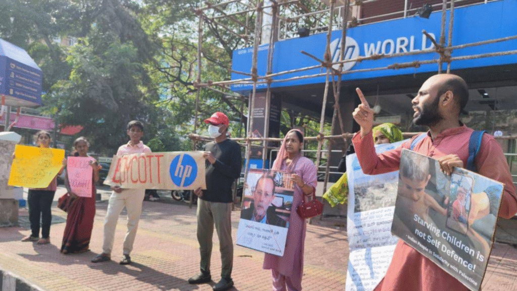 Indian People in Solidarity with Palestine (IPSP) held protest demonstrations outside Hewlett Packard (HP) outlets across multiple cities, alleging that the tech giant is complicit in Israel’s occupation and ongoing military actions in Gaza. IPSP, a citizens’ forum advocating Palestinian solidarity, has been leading a nationwide Boycott, Divestment, Sanctions (BDS) campaign in association with various mass organisations.