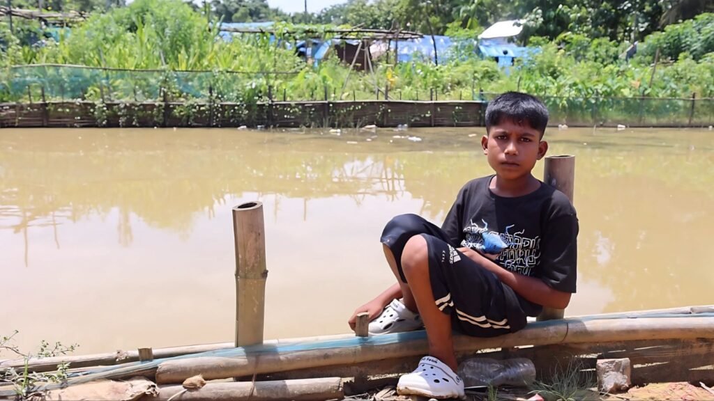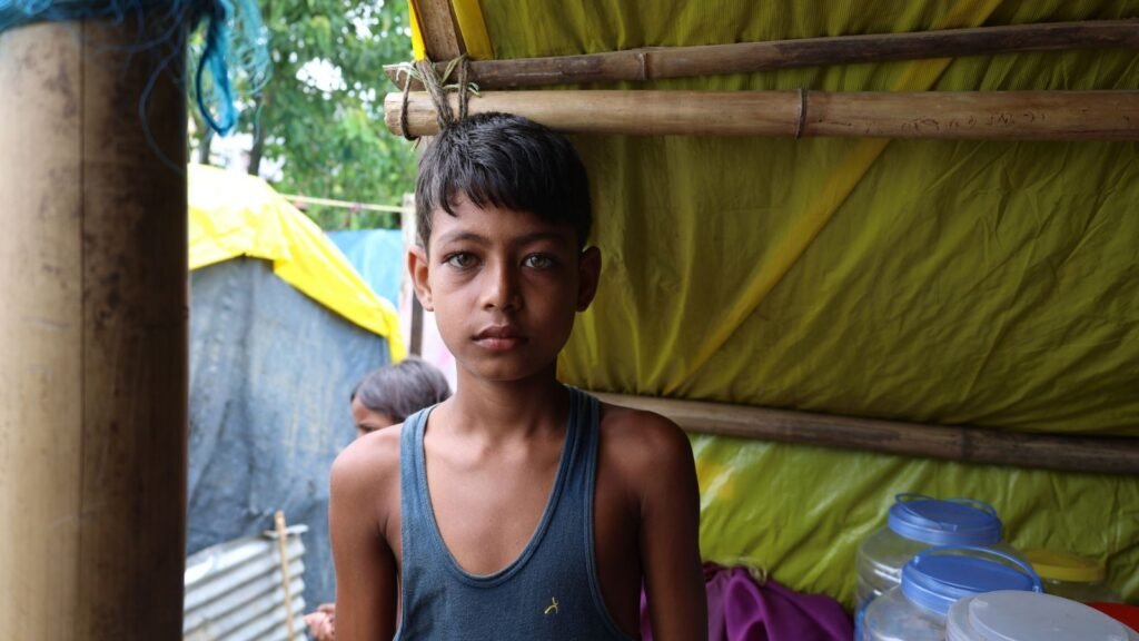 The demolition drive spared no one, not even children. Abdul Halim now sits quietly by a lake near his makeshift hut, mourning the loss of his education. His house was torn down in the middle of his exam period, leaving him without books or space to study. The anguish of interrupted learning is etched across his face, a silent testimony to dreams put on hold.
